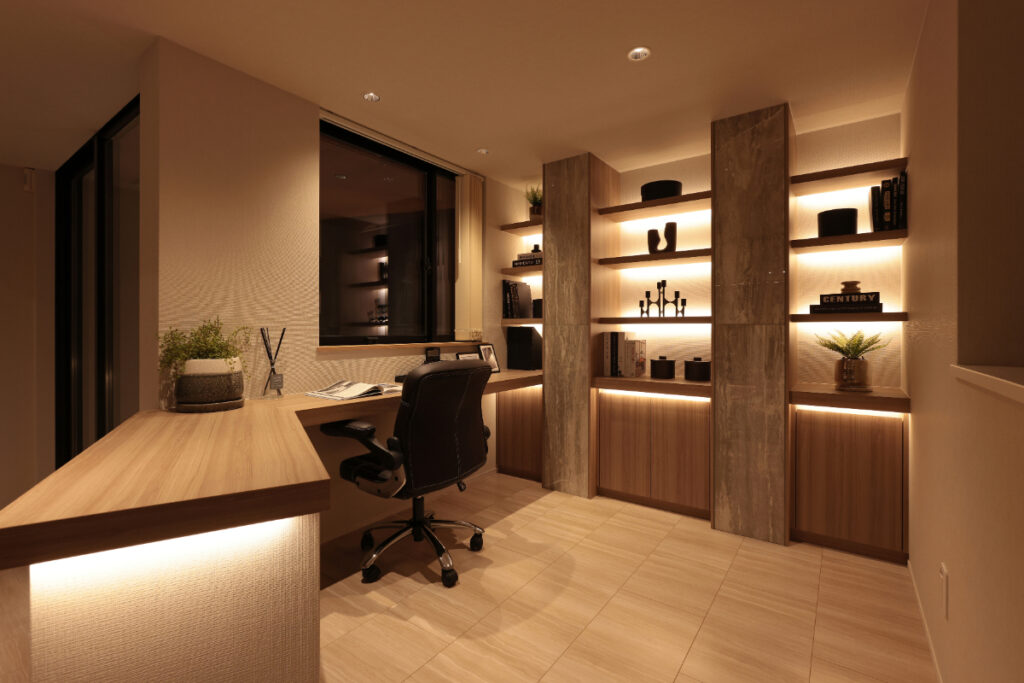 少し照明や棚を工夫するだけで“静かなワークスペース”に早変わりします。