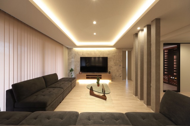 一日の終わりに、ほっと心が落ち着く場所になるような照明計画。