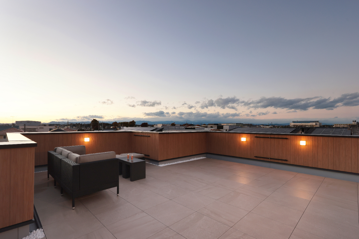 木質感の癒しとやすらぎを感じる屋上庭園のある家