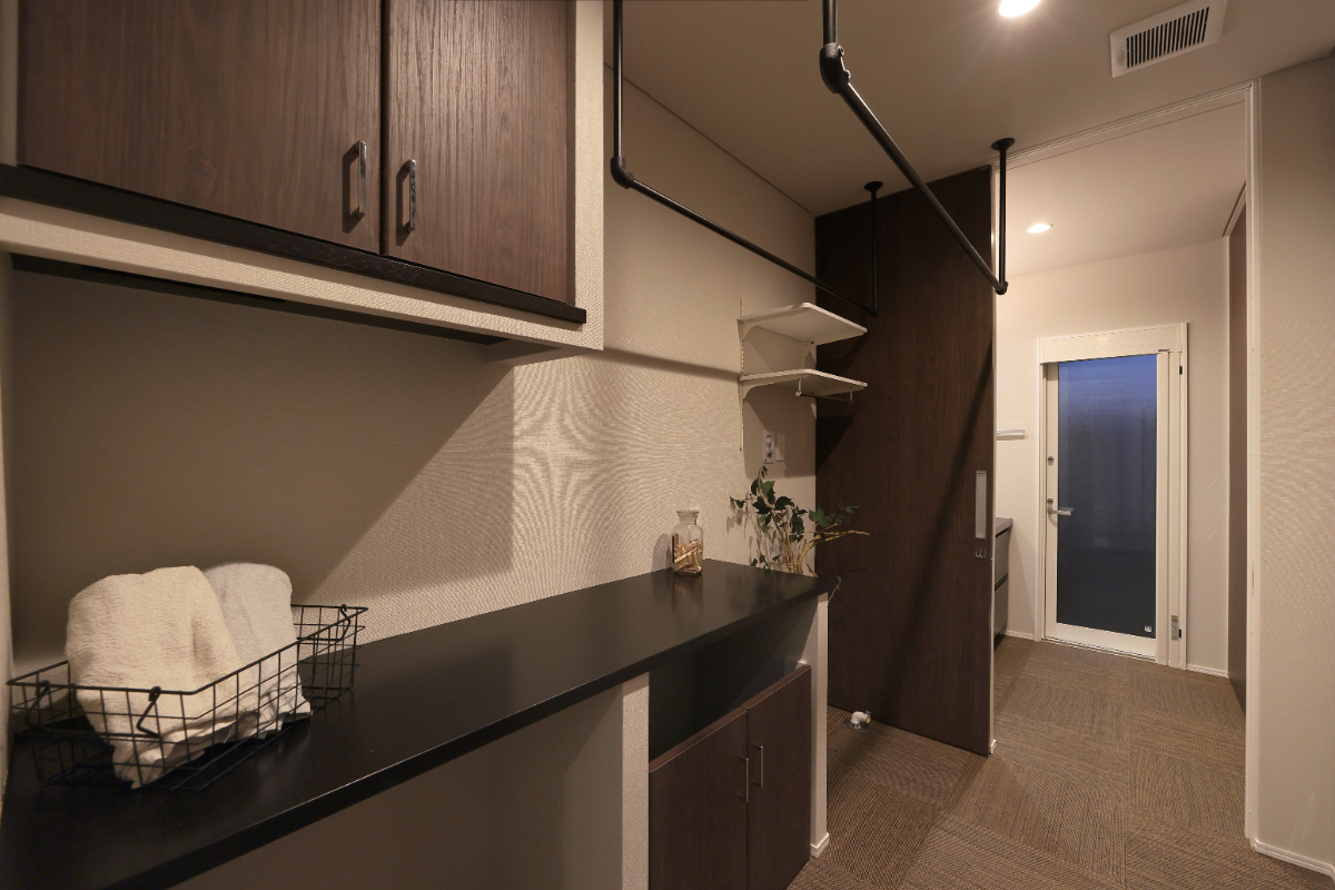 間取りは、1階フロア全体が回遊できる動線となっており、帰宅後の玄関からパントリー、クローゼット、洗面化粧室&浴室へとつながる、暮らしやすい動線となっています。屋上には広々とした庭園が広がっており、家族と過ごす週末を鮮やかに彩ります。暮らしやすく、開放感あふれるリゾートライフが叶った邸宅に仕上がっています。